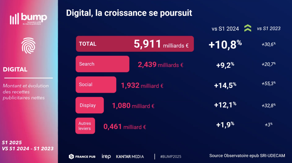 La clé de cette croissance ? Le digital, encore et toujours. Avec +10,8%, il reste le moteur principal, porté par l’explosion des formats vidéo (+27,5%) et audio (+21,1%) en ligne.